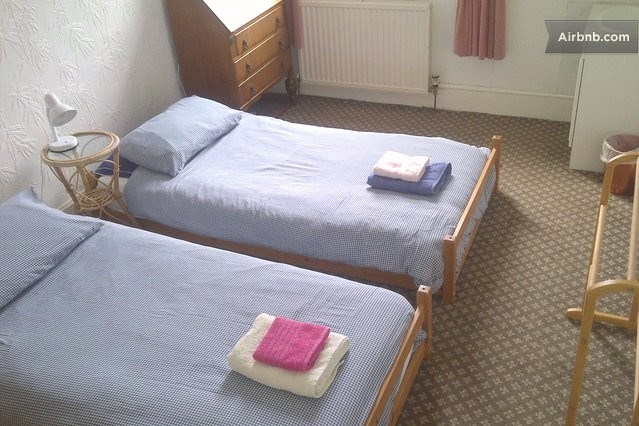 Twin room on the 2nd floor Available Occupancy: 1 or 2 people Beds: 2 standard single beds Amentities: Shared Bathroom & Shower, basin in room £35 one person £45 for 2 people |